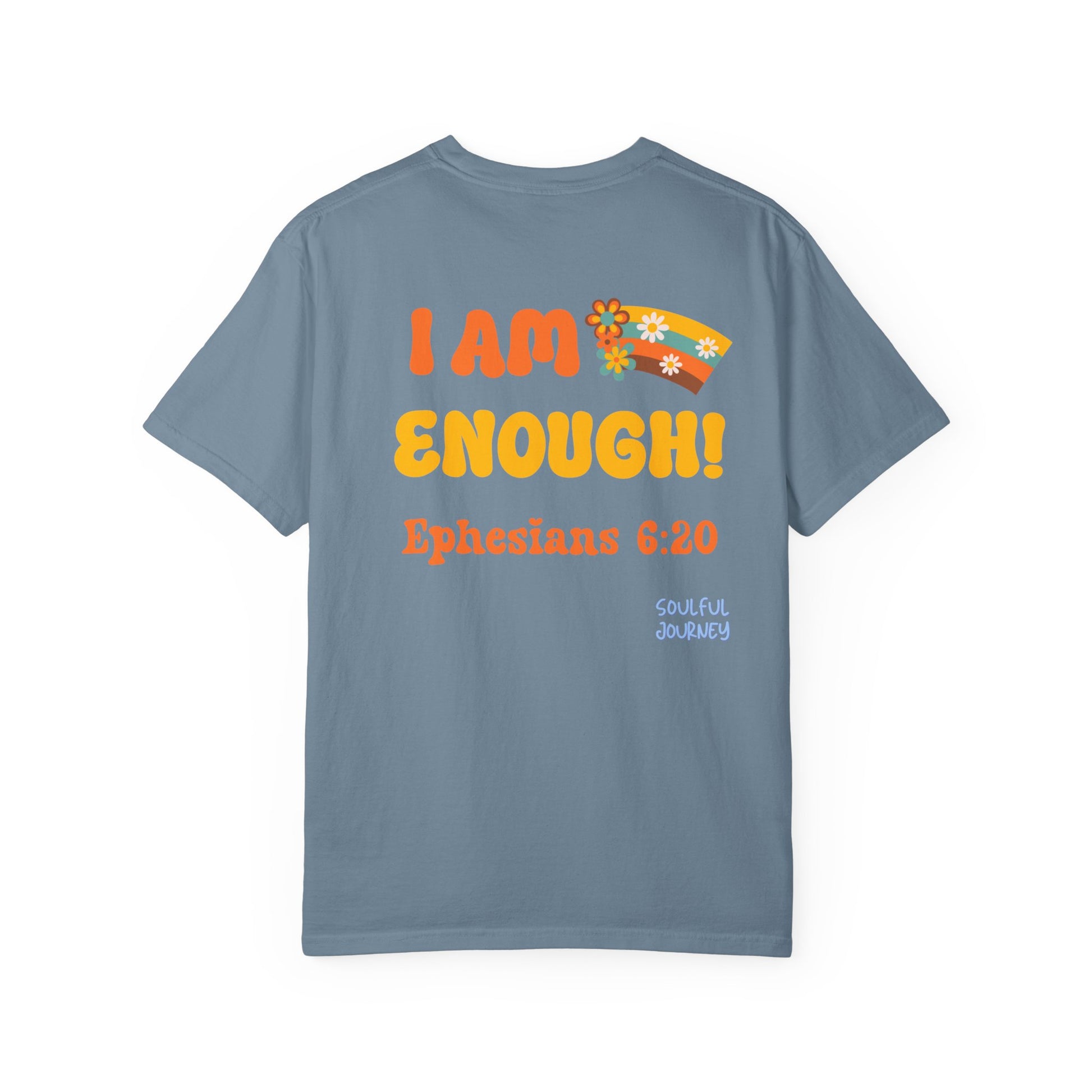This cotton garment-dyed T-shirt features a powerful message 'I Am Enough' because we have a purpose and God literally created our personalities and what makes you who you are, to be enough for our purpose and destiny. It gives off a positive and empowering vibe, making it a great addition to anyone's wardrobe. This T-shirt is perfect for those who need this reminder and want others to realize this as well.